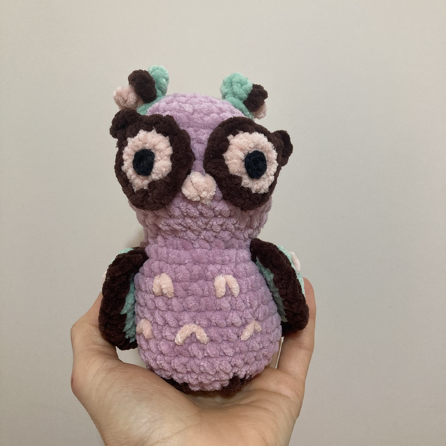Cette adorable chouette, haute de 14 cm, arbore de jolies couleurs vertes et roses qui lui donnent un charme unique. Son corps est principalement rose avec des détails verts sur ses ailes, créant un joli contraste plein de douceur. Ses grands yeux brodés lui confèrent une expression malicieuse et attendrissante, tandis que son petit bec et ses pattes, délicatement réalisés ajoutent une touche de réalisme. Fait main avec soin, ce petit compagnon coloré apportera une note de fantaisie et de chaleur à