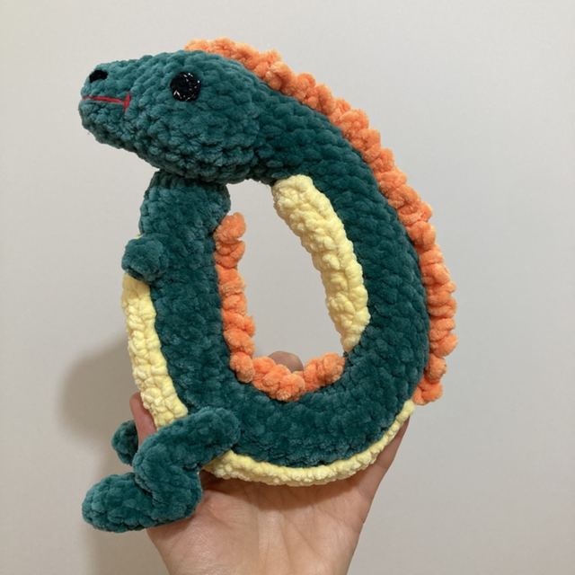 Craquez pour cette adorable lettre D en forme de dinosaure, entièrement réalisée au crochet. D’une hauteur d’environ 20 cm, cette peluche originale associe l’univers ludique des dinosaures à l’apprentissage des lettres, pour le plaisir des petits comme des grands.