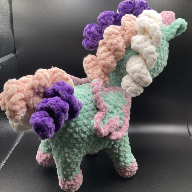 Cette magnifique licorne verte au crochet est une véritable créature féerique, mêlant douceur et enchantement. Mesurant 22 cm de haut et 22 cm de long, elle se distingue par son corps d’un vert tendre et apaisant, qui lui confère une allure unique et magique. Sa crinière et sa queue, délicatement torsadées, ajoutent une touche d’élégance et de mouvement, tandis que ses deux ailes semblent prêtes à l’emporter vers de fabuleuses aventures. Ses grands yeux pailletés captent la lumière et lui donnent une expression à la fois malicieuse et bienveillante. Idéale comme décoration ou compagnon de jeu, cette licorne au crochet apportera une note de rêve et de féerie à tout univers enchanté.